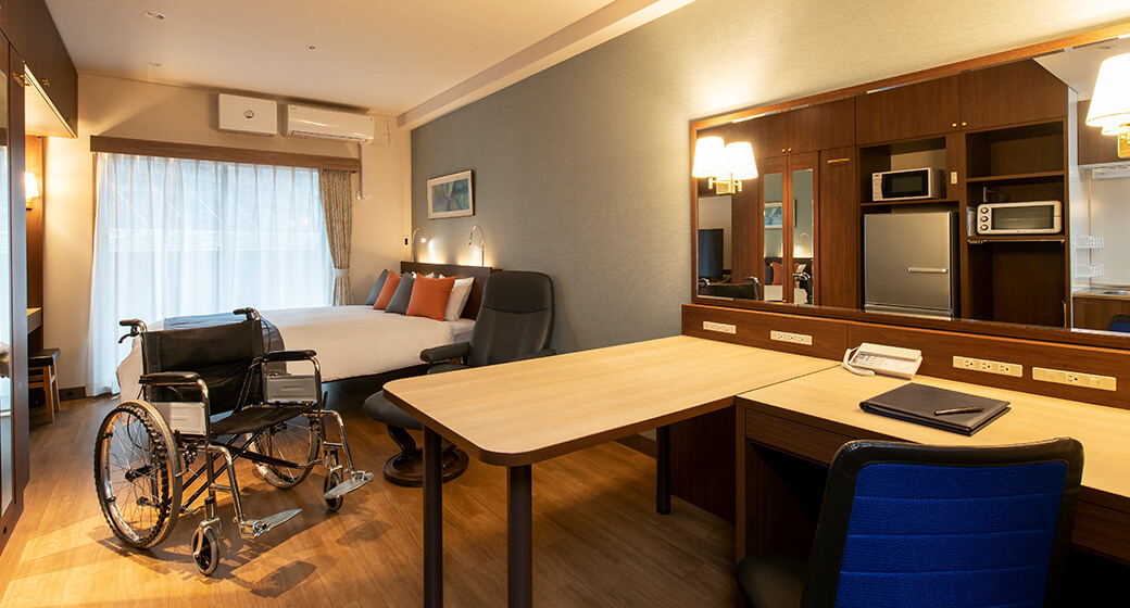 每個客房都配有專用廚房,洗衣機烘乾機,實現了適應新生活方式的奢華住宿。