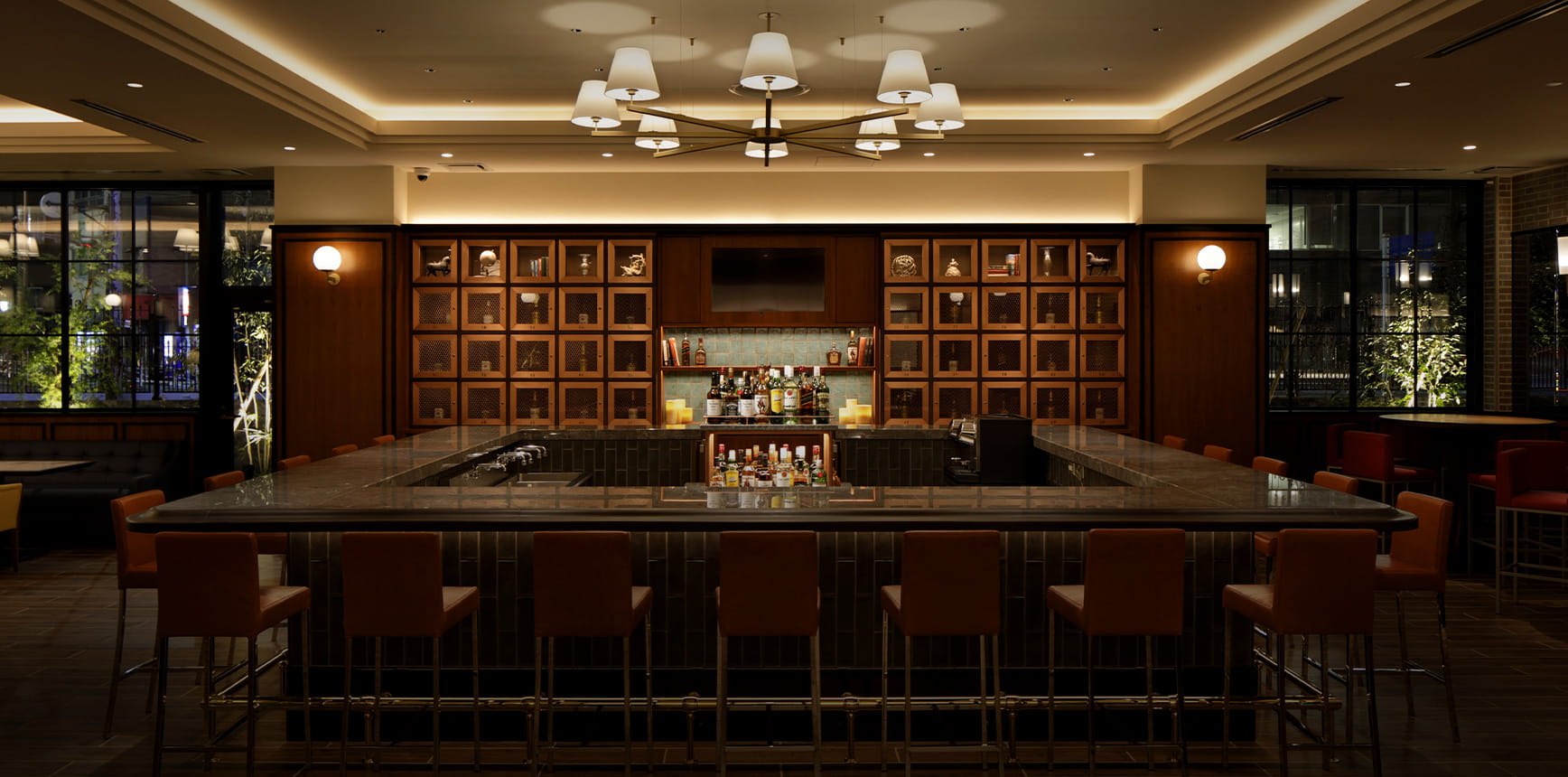 大堂休息室獨特的大堂展現了橫須賀獨特的異國情調和復古感,同時也注入了新的風貌。